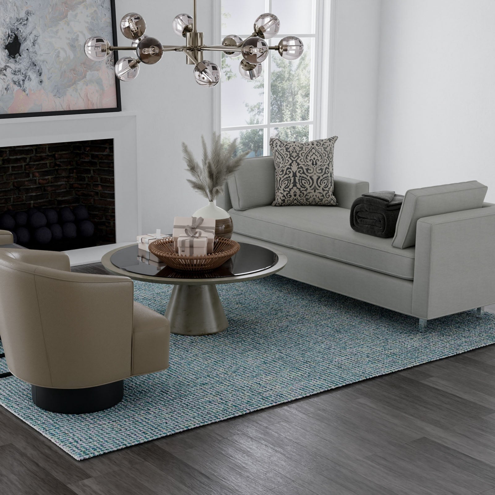 Our Brindleton Collection from makes a stunning foundation to any room. A unique dyeing process on the rug creates multiple shades of color in blue and teal. The texture of the rug tweed is created by using a tight loop tufted pile in 100-percent wool. Tweed has always been able to suit the taste of modern or casual and make a statement in your home or office.