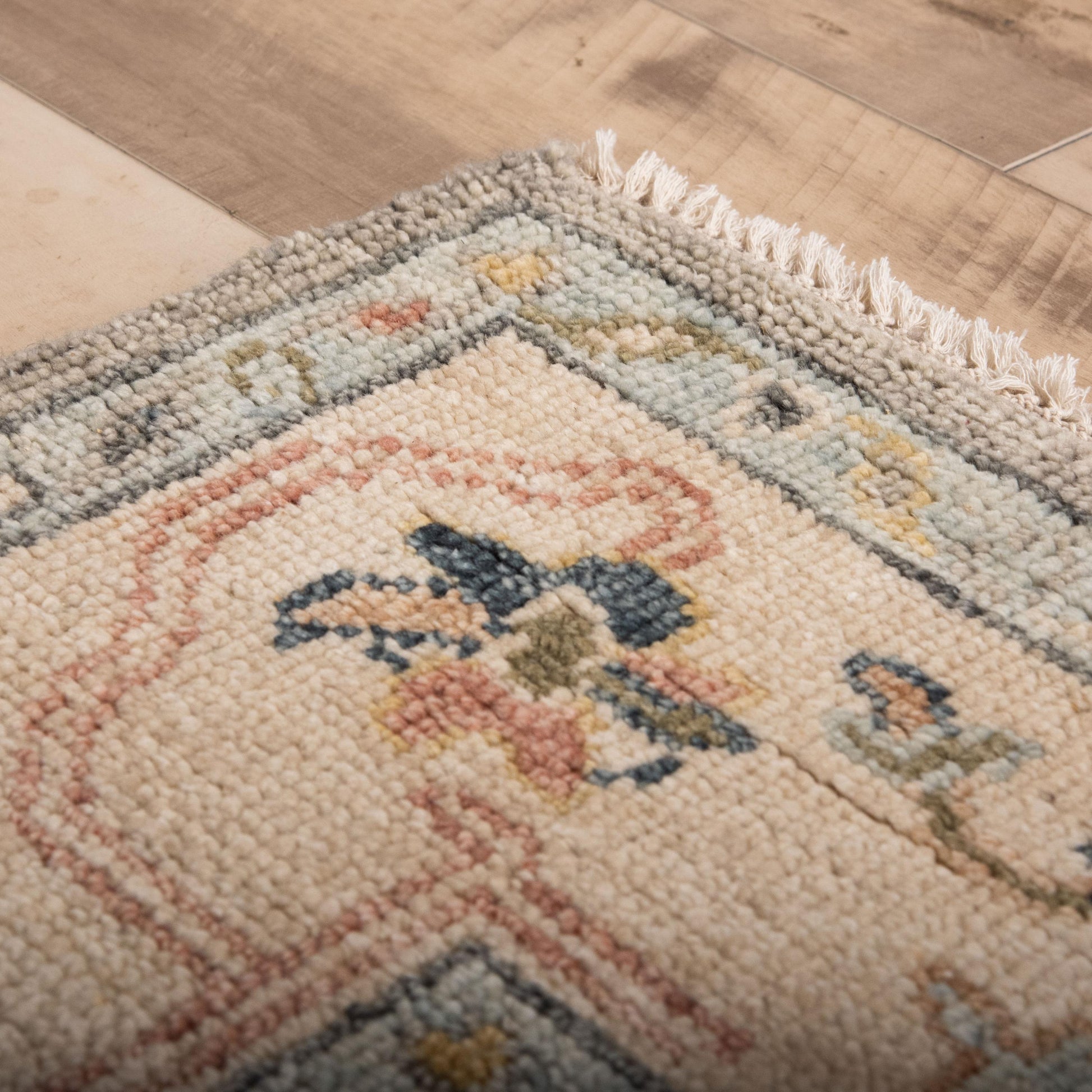 Note :Due to the handmade procedures, this collection will contain characteristics found in all handmade rugs, making each piece truly unique. Including: Size variances + or - of up to 5%- Color variances of acceptable levels due to dye lot