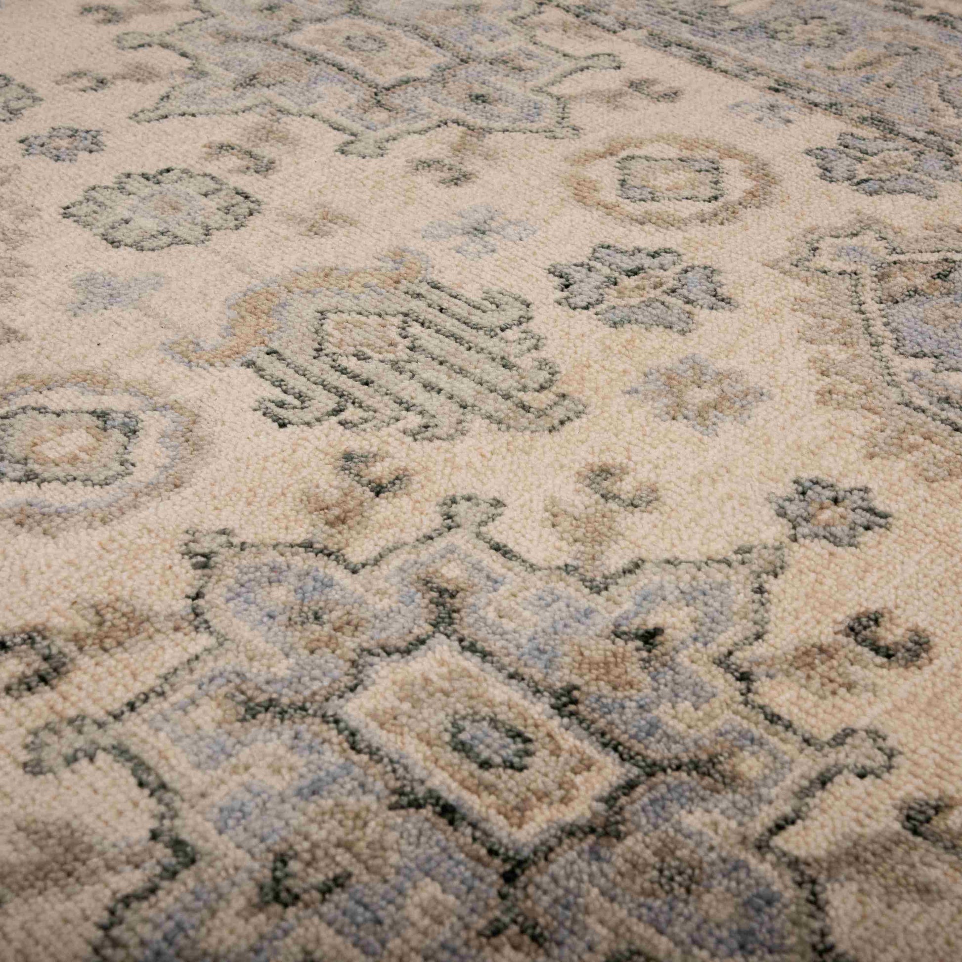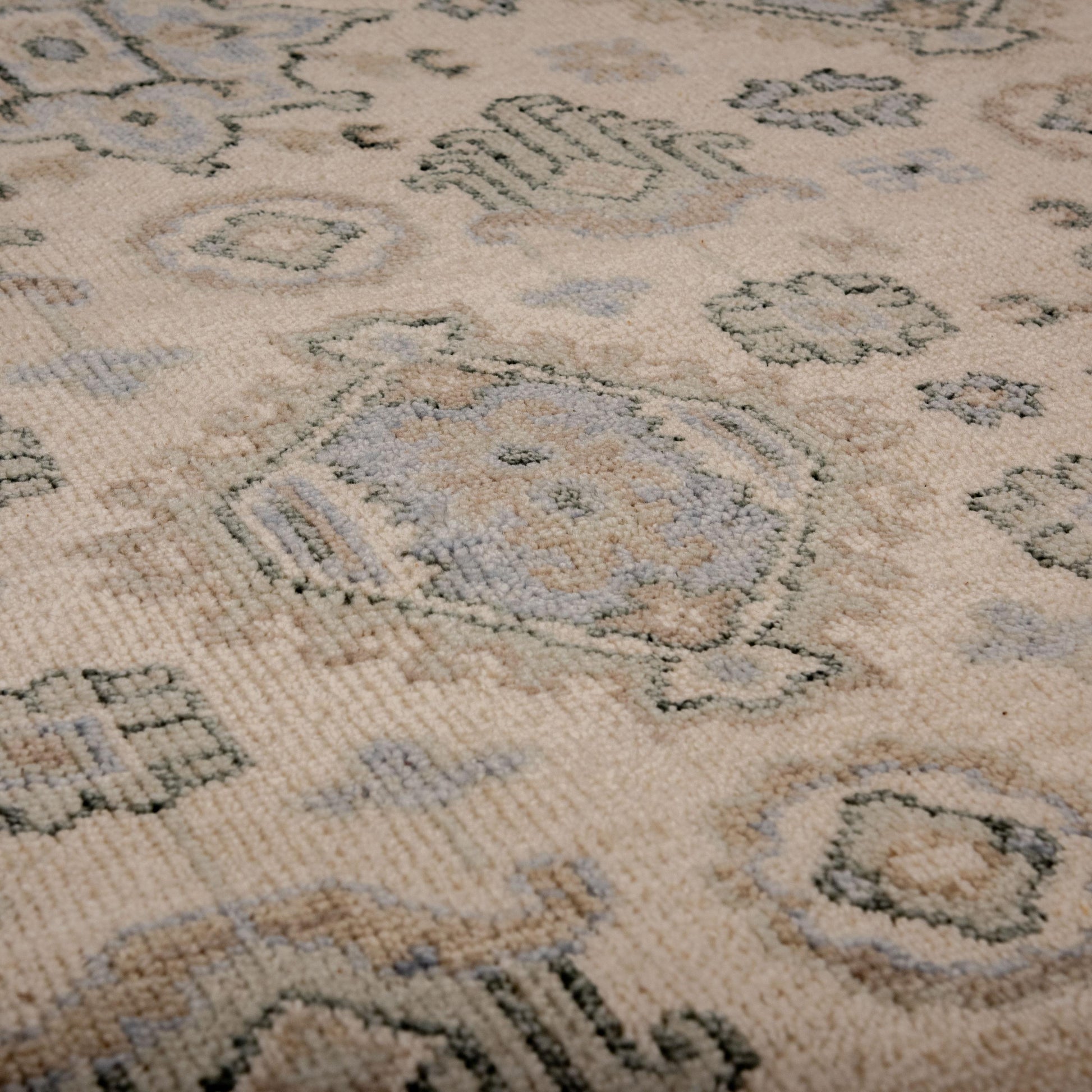 Introducing the epitome of timeless luxury: Proudly presents this distinguished rug from the renowned Hallmark Collection. Hand-knotted with meticulous precision and featuring a luxurious cut pile, this rug embodies the perfect fusion of traditional charm and contemporary sophistication. Crafted entirely from 100% wool and devoid of backing, this rug seamlessly integrates into any space, inviting you to indulge in its sumptuous texture and unparalleled comfort. Adorned in a harmonious palette of beige, grey, brown and ivory hues, it exudes understated elegance and timeless allure. Enriched with captivating medallions and bordered motifs, this rug boasts an updated classic design that pays homage to centuries-old construction techniques. Each rug undergoes meticulous hand-finishing and hand surging in India, showcasing the dedication and expertise of skilled artisans. Elevate your home decor with the timeless sophistication of this Hallmark Collection rug. Whether as a focal point or a complementary piece, its refined design and superior craftsmanship promise to transform your space into a sanctuary of unmatched beauty and charm. Immerse yourself in the luxury of this extraordinary rug, where every detail speaks of enduring elegance and heightened refinement.
