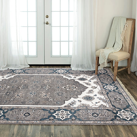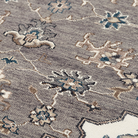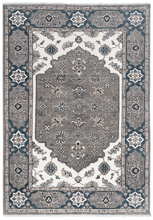 This durable 100% wool hand-knotted rug from the Historia Collection features a timeless Persian design in a modern color palette of gray, ivory, and blue. Its traditional intricate pattern adds refinement and sophistication to any room, making it a perfect addition to any interior design style. With its soft and plush texture, this rug can withstand high traffic areas while adding warmth and iconic style to any living space.