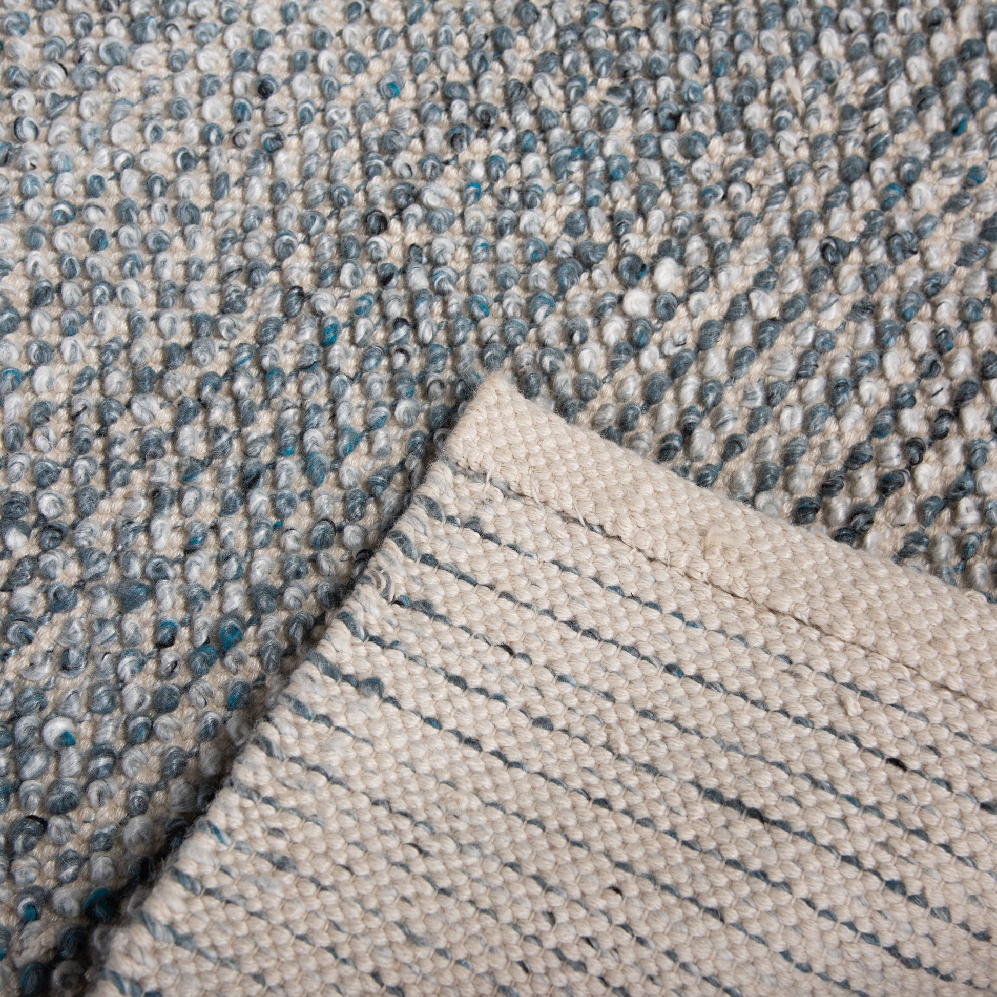 Cloaked in a spellbinding palette of misty teal and whispering ivory, this rug from coveted Infinity Collection emanates an aura of opulence. The solid textured surface adds layers of depth and intrigue to any room, a silent symphony of tactile delight. Effortlessly blending into any modern interior, its contemporary charm serves as the perfect canvas for your design aesthetic. Step into a realm of modern luxury and understated allure with this entrancing rug from enchanting Infinity Collection. This captivating masterpiece, transcends the ordinary; it's a poetic expression of contemporary sophistication and versatility, a silent narrator of style in your living space. Artisanal hands have woven this rug with meticulous precision, sculpting a luxurious loop pile with softness that dances beneath your feet. With no backing, it envelops your senses in a cloud of plushness, infusing warmth and serenity into your home.