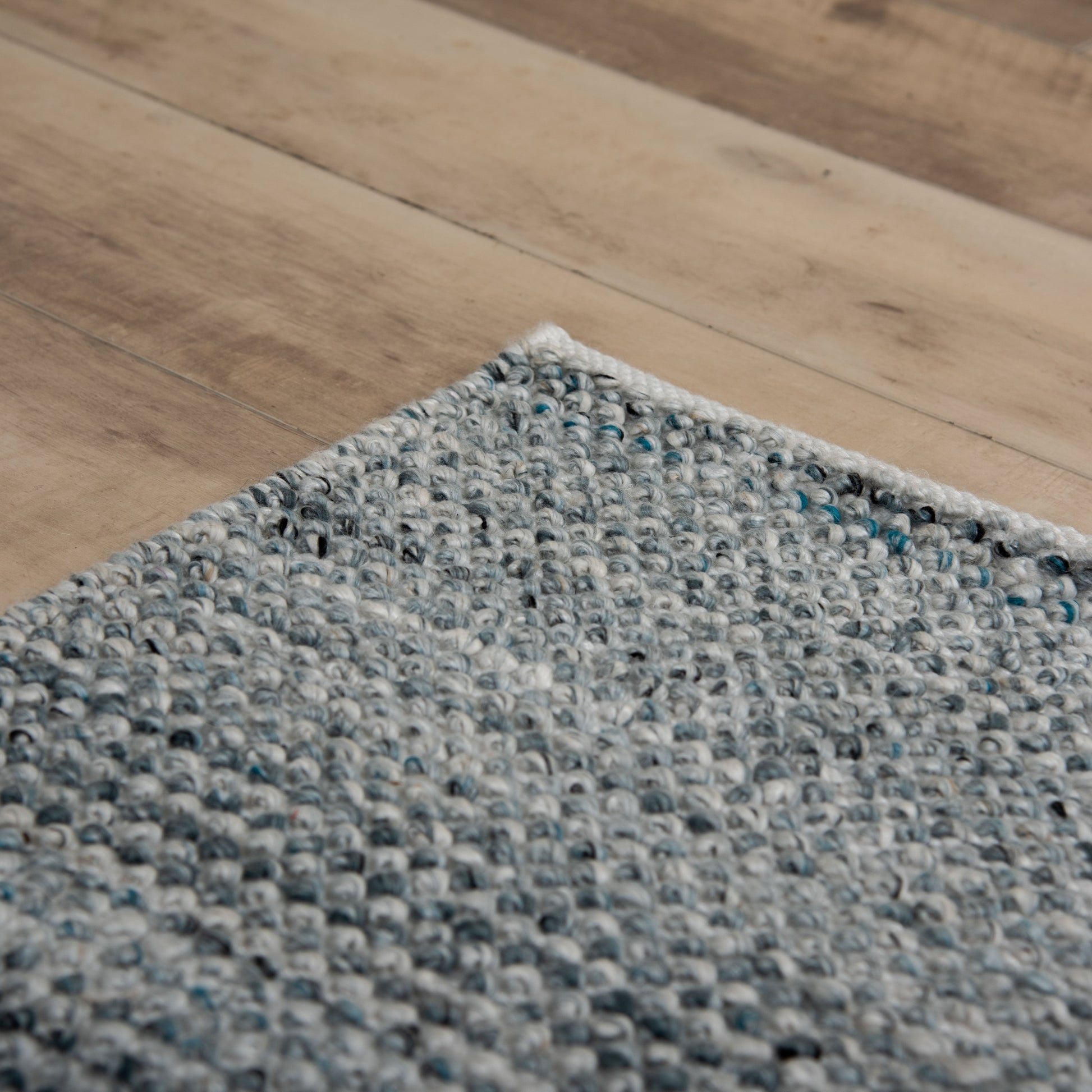 Cloaked in a spellbinding palette of misty blue and whispering ivory, this rug from coveted Infinity Collection emanates an aura of opulence. The solid textured surface adds layers of depth and intrigue to any room, a silent symphony of tactile delight. Effortlessly blending into any modern interior, its contemporary charm serves as the perfect canvas for your design aesthetic. Step into a realm of modern luxury and understated allure with this entrancing rug from enchanting Infinity Collection. This captivating masterpiece, transcends the ordinary; it's a poetic expression of contemporary sophistication and versatility, a silent narrator of style in your living space. Artisanal hands have woven this rug with meticulous precision, sculpting a luxurious loop pile with softness that dances beneath your feet. With no backing, it envelops your senses in a cloud of plushness, infusing warmth and serenity into your home.