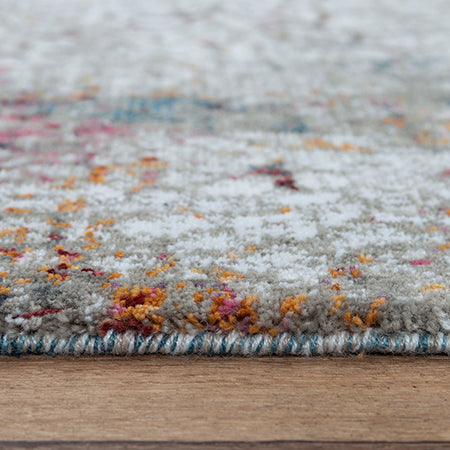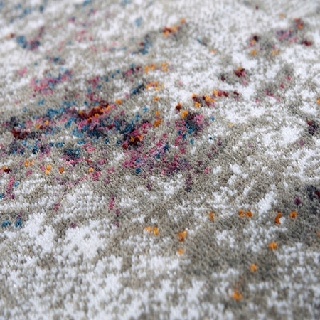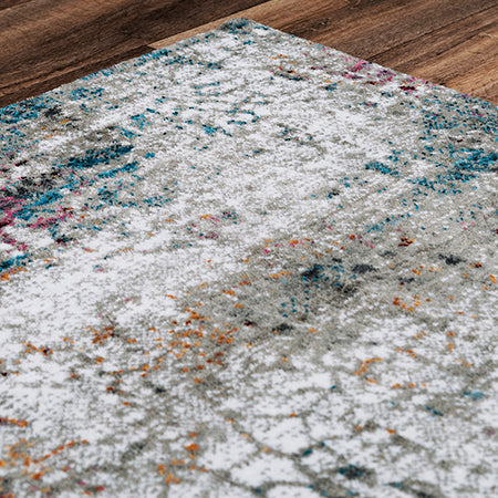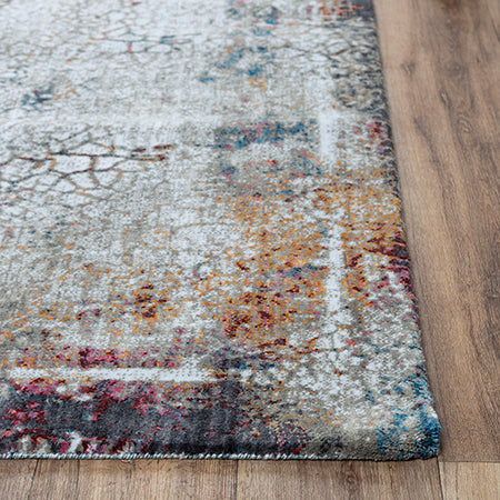 This Signature Abstract Rug brings the look of cracked soil with the ivory and grey pattern on the background while brilliant jewel tones of blue, gold, pink, and burgundy make their way to the surface -- a treasure in waiting. Made from 100-percent recycled polyester that is power-loomed, this rug will be your treasure in your home or office modern or transitional style decor. Clean bound edges give you a straight and true finish.