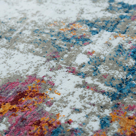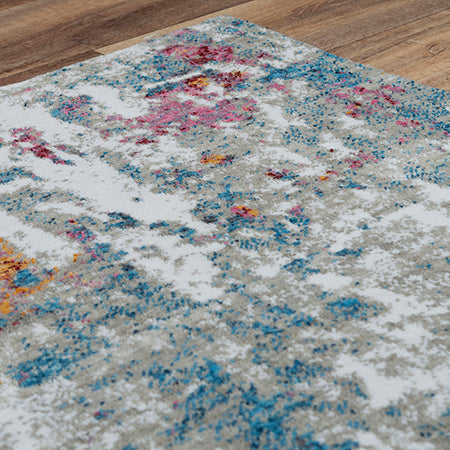 Elegant jewel tones of blue, gold, pink, and burgundy are scattered in bunches through the ivory and grey field of this Signature Abstract Rug. Made of 100-percent power-loomed recycled polyester, this rug is durable and will look great for years to come in your modern or transitional style home or office decor.