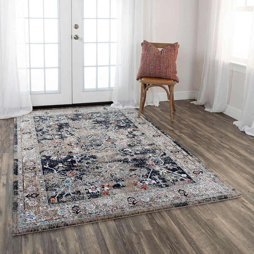 Captivating rich colors of charcoal, burgundy, blue and gold are masked by the distressed look of neutral ivory, grey and beige; giving this Signature Rug a hint of a fine vintage heirloom. A perfect addition to your other traditional or vintage style home decor. Power-loomed from 100-percent recycled polyester, this rug will withstand years of service and be easy to clean.