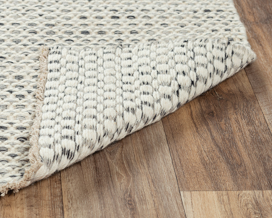 Add a cozy, casual, modern style to your room with this incredible rug. The softness of the Windsor Grey and Ivory Basket Weave Rug cannot be overstated. Hand-woven from 100-percent wool by skilled artisans, it is also hand-finished with fringe on two edges for an inviting look.